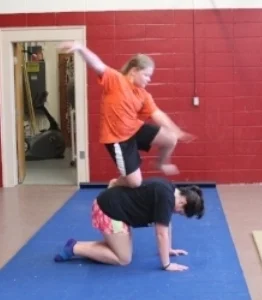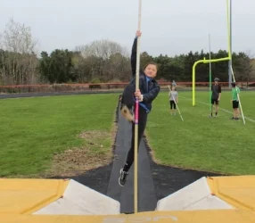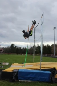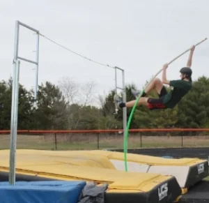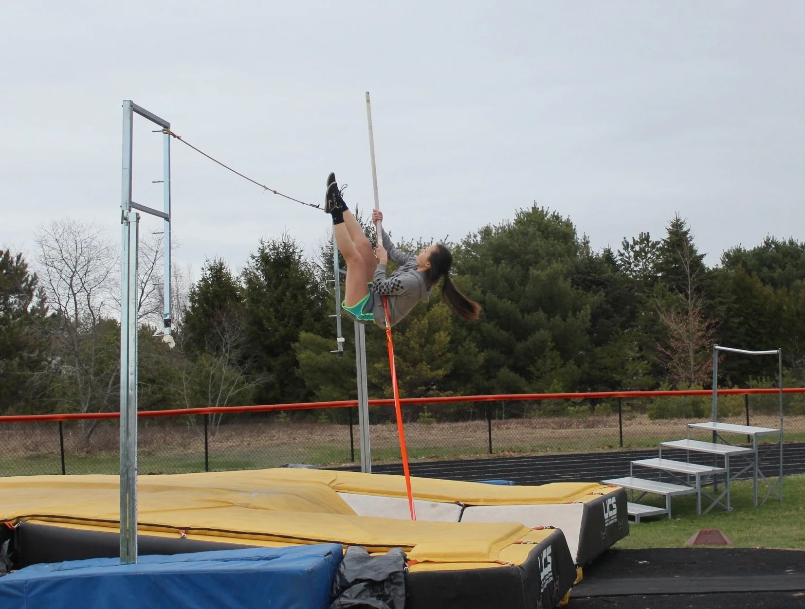 As an athlete begins to learn to pole vault there is often a desire on the part of the coach, vaulter and teammates to achieve right away. Often the first thought, in order to “get a height”, is to swing both legs into the air and get them over the crossbar. This action, trying to get feet over the bar, makes it very difficult for the athlete to continue to progress and improve over time.